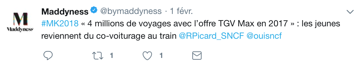 Live tweet pour le Twitter de Madyness via l’application Buffer, lors des conférences, des tables rondes et dans les espaces de démonstration de la Maddy Keynote 2018 qui avait pour thème « La Cité du Futur » décliné autour de 4 axes : la Mobilité, le Bien-être, l’Habitat et l’Agora.